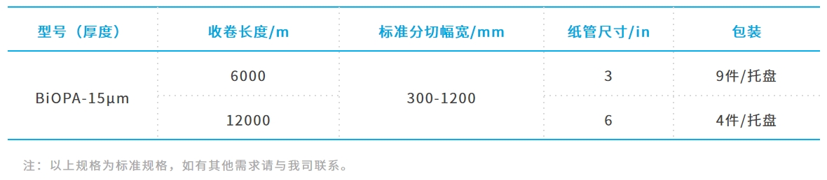 原料:生物基聚酰胺;工艺:双向拉伸; 电晕处理:单/双面